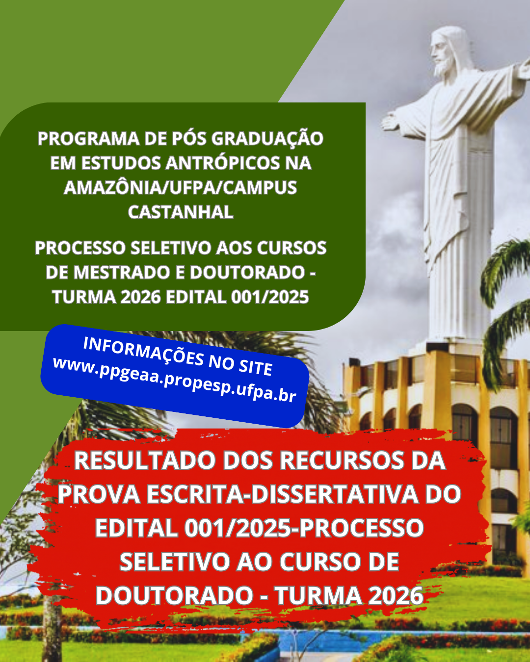 O Programa de Pós Graduação em Estudos Antrópicos na Amazônia torna público o resultado dos recursos da Prova de Entrevista, destacando a nota final após a reavaliação pela banca de seleção, com a devida situação do(a) candidato(a)