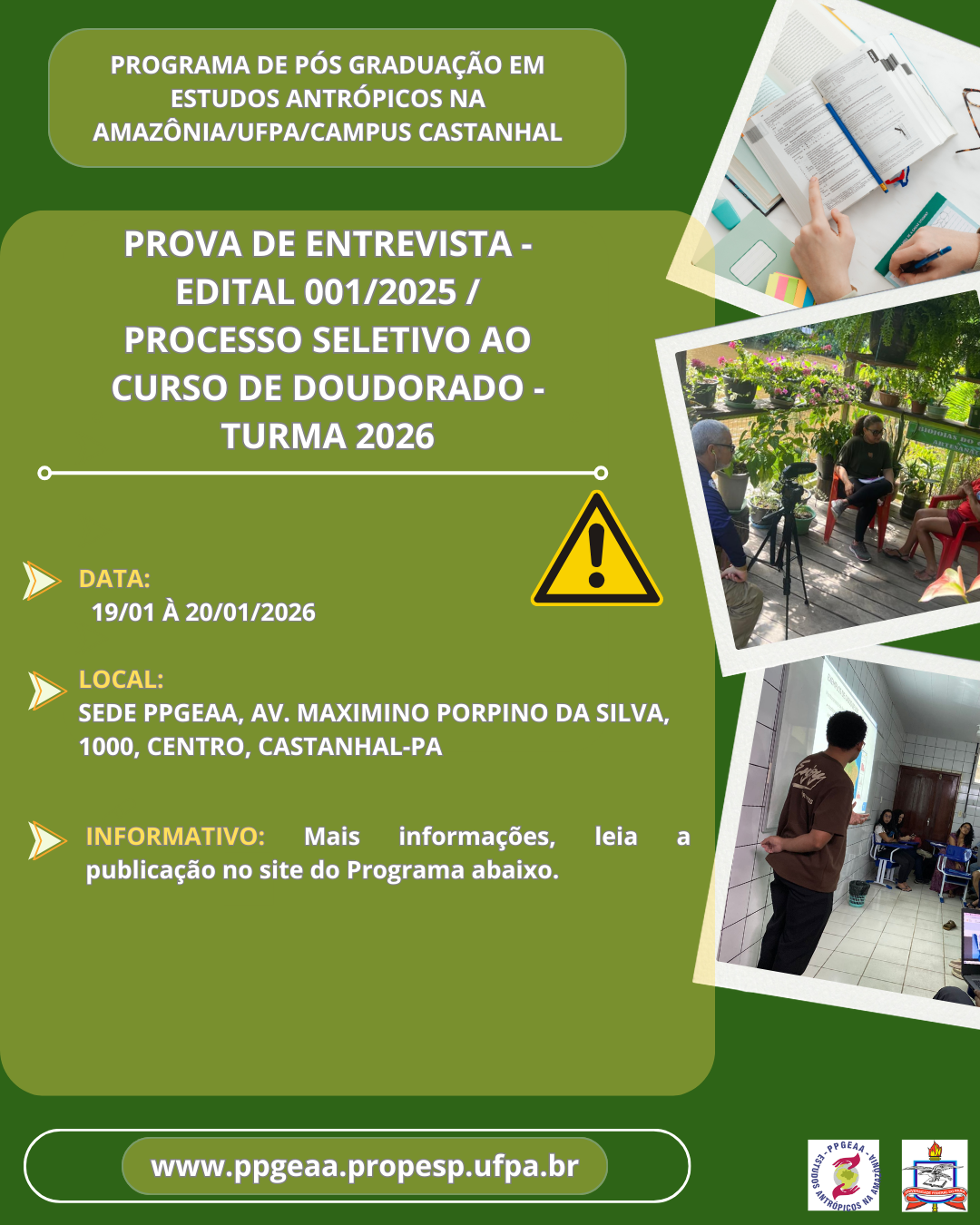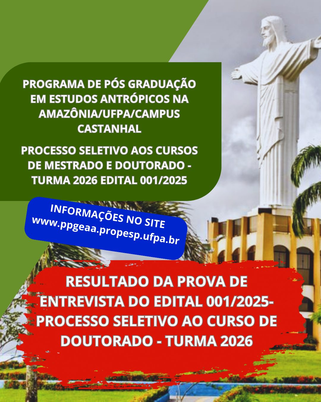 O Programa de Pós Graduação em Estudos Antrópicos na Amazônia torna público o resultado dos recursos da Prova de Entrevista, destacando a nota final após a reavaliação pela banca de seleção, com a devida situação do(a) candidato(a)