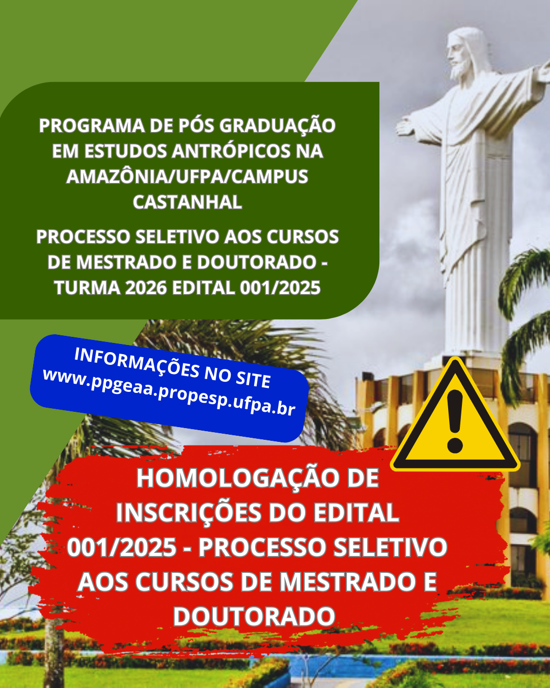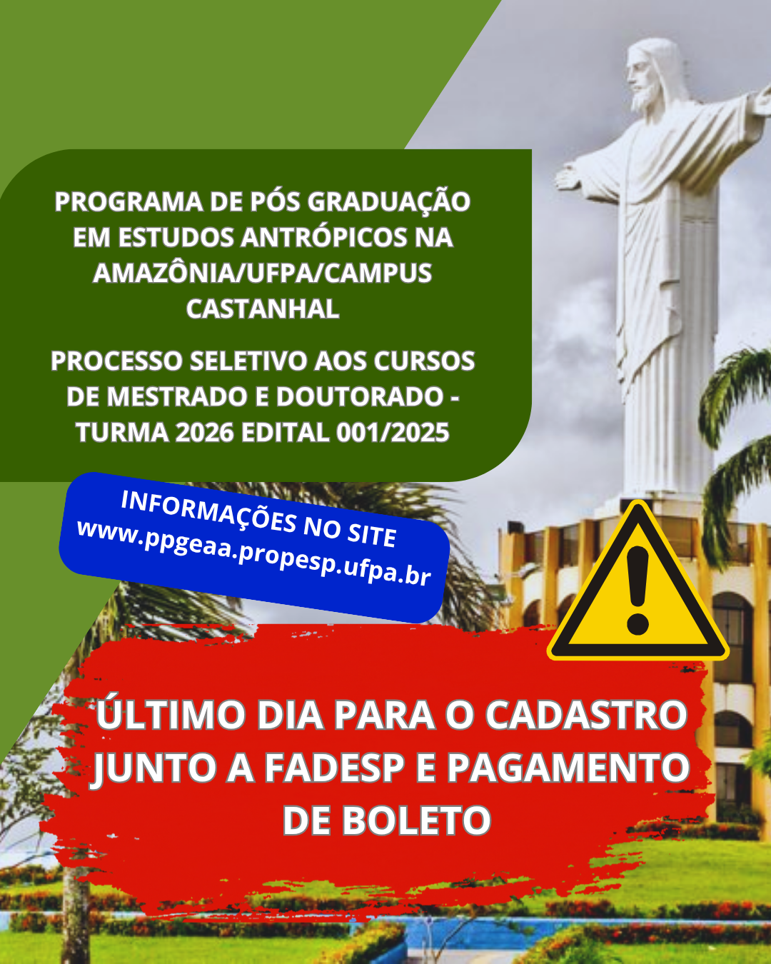 Não perca o prazo final para o Processo Seletivo do Mestrado e Doutorado no Programa de Pós-Graduação em Estudos Antrópicos na Amazônia (PPPGEAA/UFPA/Campus Castanhal)!